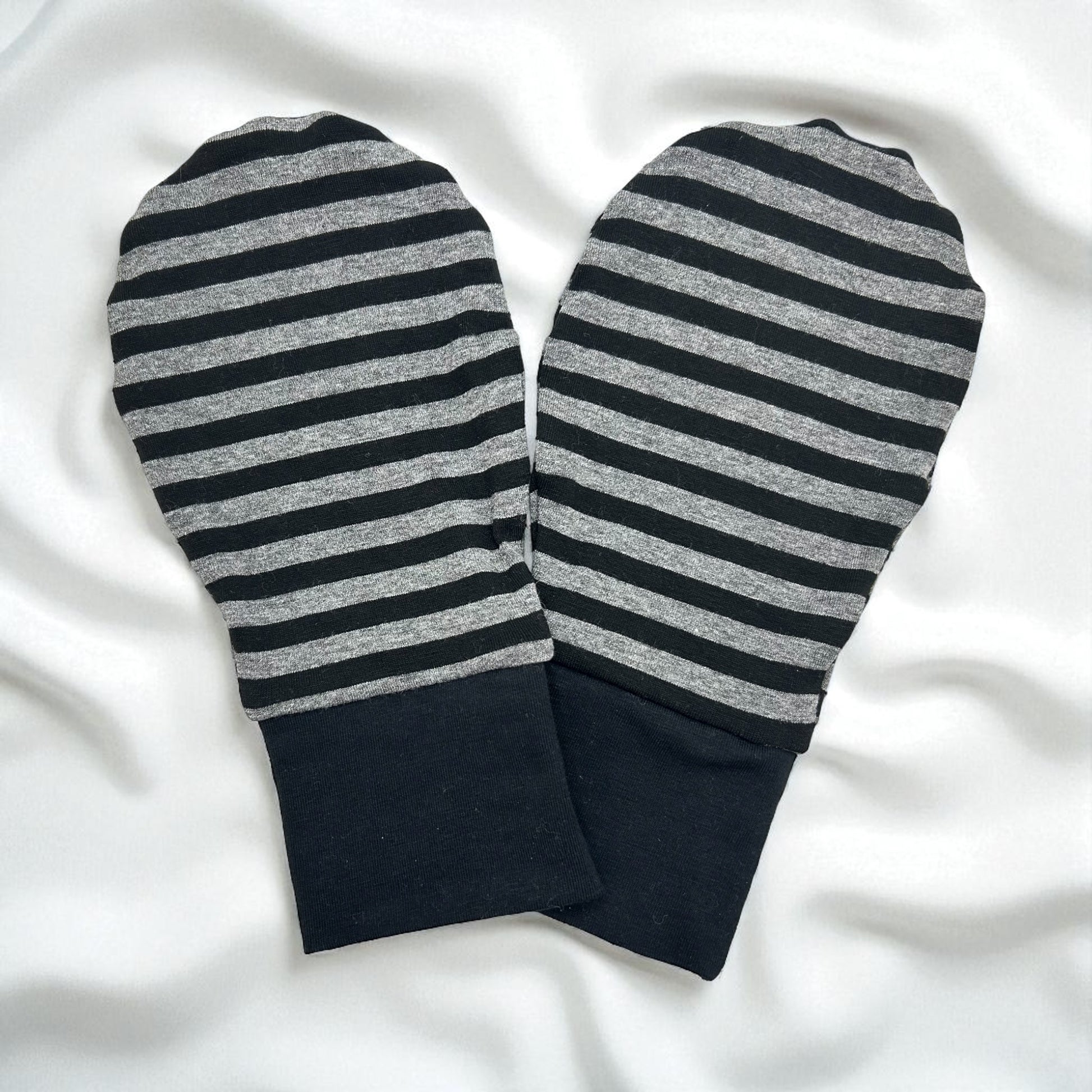Special Needs Organic Cotton Eczema Mittens: Striped Sleep Gloves with Long Cuffs